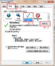 在Internet选项框中,选择【安全】——【受信任的站点】——【站点】。