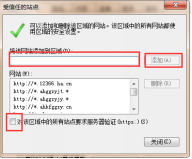 打开受信任的站点,将电子签章在线申请系统登录地址粘贴进去,点击【添加】,注:对该区域中的所有站点要求服务器验证此项不打勾。添加完成后点击【关闭】。