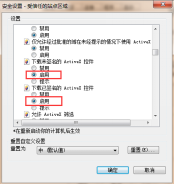 打开安全设置框后,对【ActiveX控件和插件】选项的如下图所示五个子选项勾选【启用】,点击【确定】即可。