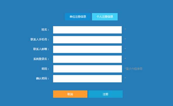 如果您是代表所在单位进行电子签章申请选择企业注册,否则选择个人注册,具体注册项如下图二所示。