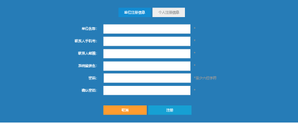 系统登陆界面如下图所示,点击注册填写,选择填写对应注册的相关信息。如果您已注册过本系统,直接使用账户(支持邮箱、手机号、自定义用户名三种账户登陆)、密码登陆即可,否则请先注册。