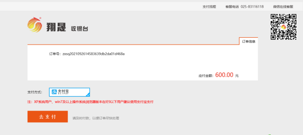 1)支付方式:本系统支持支付宝方式支付