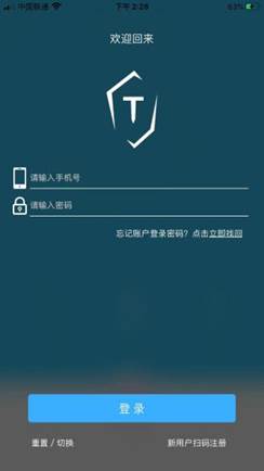 注册成功的用户通过以下步骤进行用户登陆:点击桌面图标→输入手机号、密码→登录,界面如图: