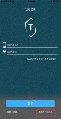 2、您为首次使用或者使用新的账号,请点击新用户扫码注册,扫码对应网址的二维码即可,会跳到注册页面,填写对应信息进行注册,成功后即可使用。