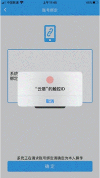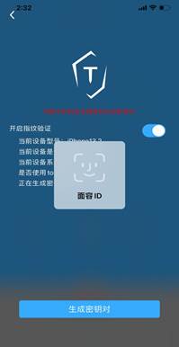 3、点击确定按钮后,用户输入密钥保护口令或指纹或面容(根据不同手机系统,验证方式不同),如下图;