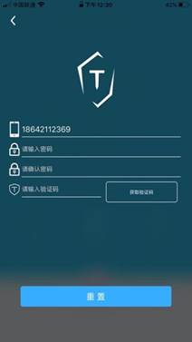 → 扫描对应平台中的“重置”二维码 → 成功后,跳转到重置界面 → 输入账号新密码 → 点击获取验证码 → 输入验证码 → 重置,界面如图: