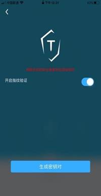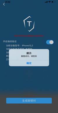 点击重置按钮重置成功后会跳转到生成密钥页面(使用密钥对增加用户安全):点击生成密钥对按钮 → 弹出让验证“指纹/面容”→ 验证成功后,弹出提示框,提示“重置成功,请登录” → 返回登录页面,填写用户名和密码即可 ,界面如图: