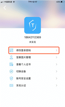 用户修改登录密码功能,通过以下步骤进行修改: 点击主页左上角图标 → 点击“个人中心”模块 → 点击“修改登录密码”,界面如图: