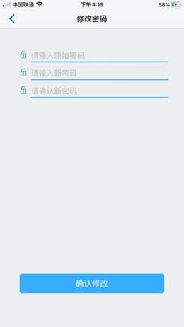 跳转到“修改密码”页面,填写原始密码和新密码,点击“确定修改”按钮即可,如下图: