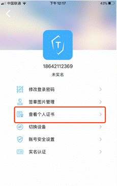 用户查看个人证书功能,通过以下步骤进行修改: 点击主页左上角图标 → 点击“个人中心”模块 → 点击“查看个人证书”按钮,界面如图: