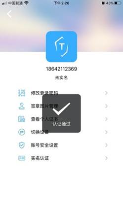 通过以上步骤跳转到“活体验证”界面→ 通过提示,完成个人身份认证 → 成功后,跳出界面,并提示“认证通过”,界面如图: